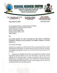 The letter alleged that Dr. Isreal delved into the daily operations of the hospital, demanded departmental presentations, and acted outside the provisions of administrative guidelines governing the relationship between boards and management of federal institutions. It further claimed that no formal letter from the Presidency or Ministry was presented to officially introduce him as Board Chairman.