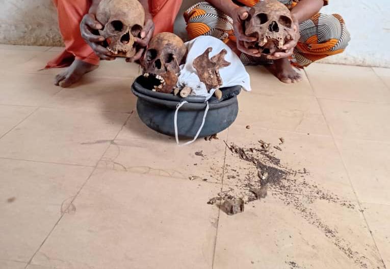Operatives of the Ogun State Police Command have arrested two men for alleged unlawful possession of three human skulls in the Ijebu area of the state.